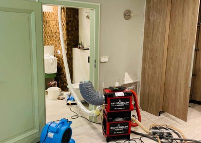 Po zakończeniu prac przez zespół hydraulików pojawiła się ekipa techników i niezwłocznie po usunięciu awarii przystąpiła do montażu osuszania w mieszkaniu, celem jak najszybszego zabezpieczenia rozprzestrzeniania się szkody.