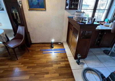 Przyczyną wycieku była nieszczelność na trójniku znajdującym się pod wylewką betonową na środku salonu. Kolejna precyzyjna lokalizacja pozwoliła na ograniczenie rozprzestrzeniania się szkody pozalaniowej.