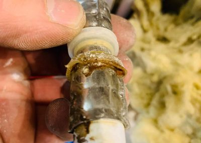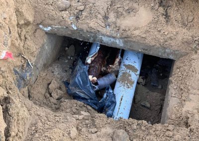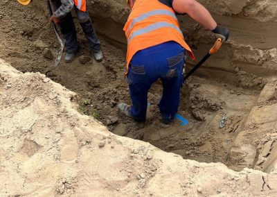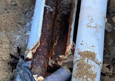 Po przeprowadzeniu wszystkich czynności diagnostyczno – pomiarowych ustalono miejsce wycieku. Dokonano wykopu ziemi – Przyczyną była przerdzewiała rura stalowa w otulinie proizolowanej.